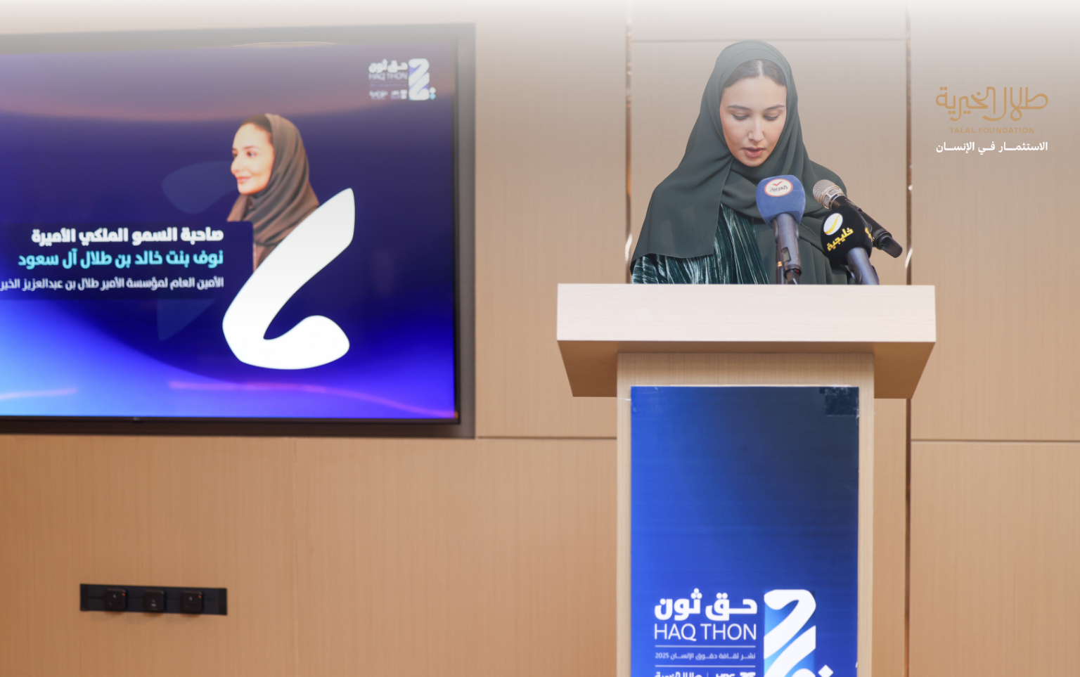 شاركت سمّو الأمين العام الأميرة نوف بنت خالد بن طلال آل سعود أمين عام طلال الخيرية في الحفل الختامي لِهاكاثون حقوق الإنسان “حق ثون” التي نظمته هيئة حقوق الإنسان بهدف إشراك مختلف فئات المجتمع في تصميم حلول رقمية تُسهم في تعزيز منظومة حقوق الإنسان. وشهد الحفل تكريم الفائزين في مسارات “حق ثون”، تقديراً للمبادرات النوعية التي قدّموها بابتكار منتجات حديثة تُسهم في ترسيخ ثقافة حقوق الإنسان في مجتمعنا الطموح.